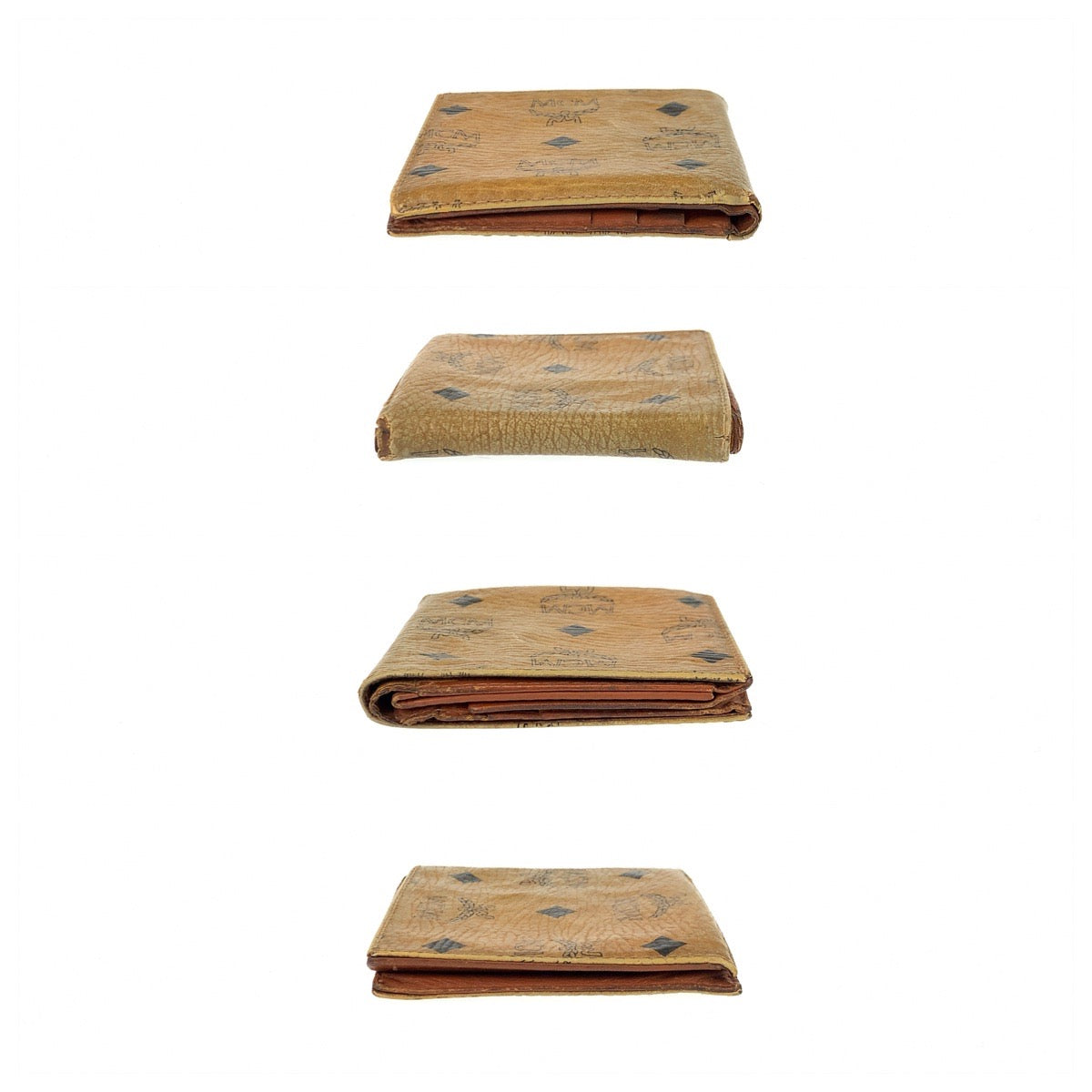 22520 MCM エム シー エム ヴィセトス ブラウン キャメル ゴールド金具 レザー 折財布 コンパクトウォレット レディース B1