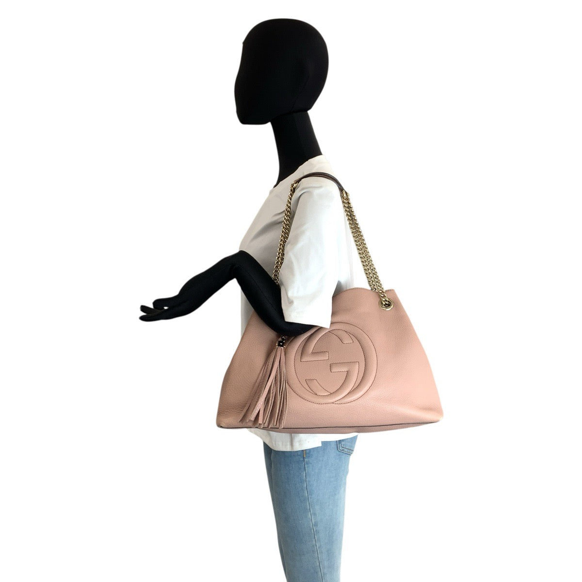 22573 GUCCI グッチ ソーホー インターロッキング ピンク ゴールド金具 レザー 308982 チェーンショルダーバッグ トートバッグ レディース ABP88