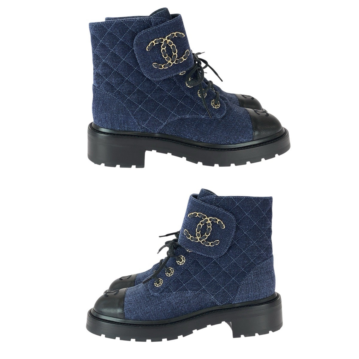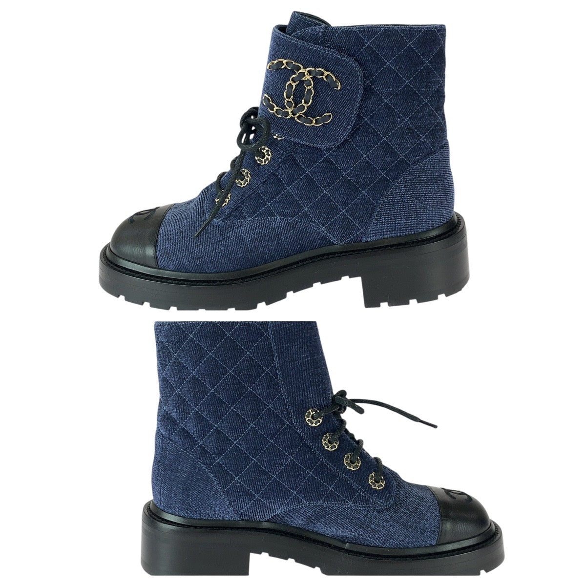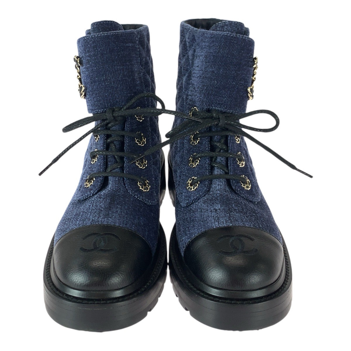 22579 CHANEL シャネル マトラッセ ココマーク サイズ38C ネイビー ブラック ゴールド金具 ベルベット / レザー G36424 ブーツ ショートブーツ レディース A110