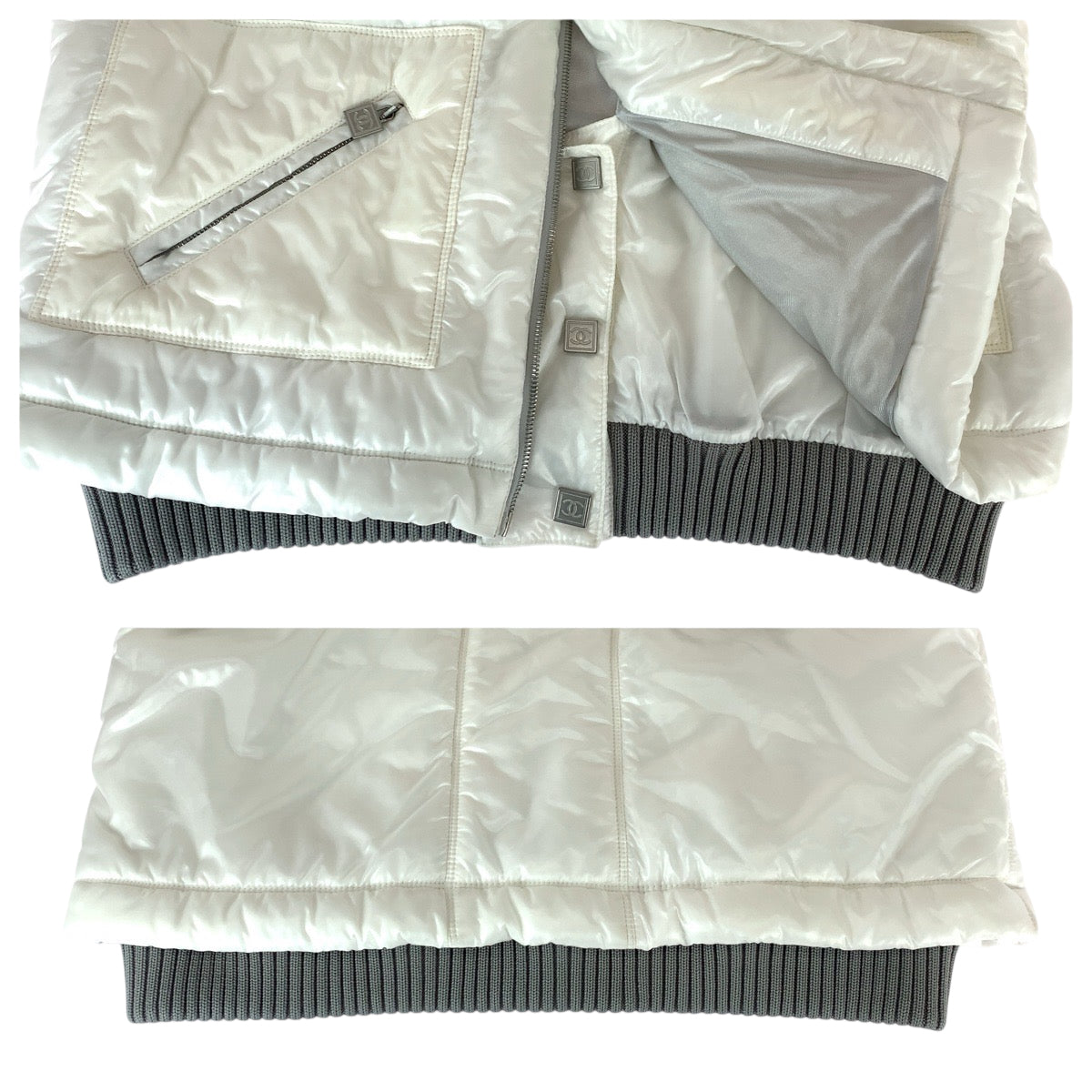 22580 CHANEL シャネル ココマーク サイズ44 ホワイト グレー シルバー金具 ナイロン P21850V13361 ダウンジャケット アウター ナイロンジャケット メンズ ABP100