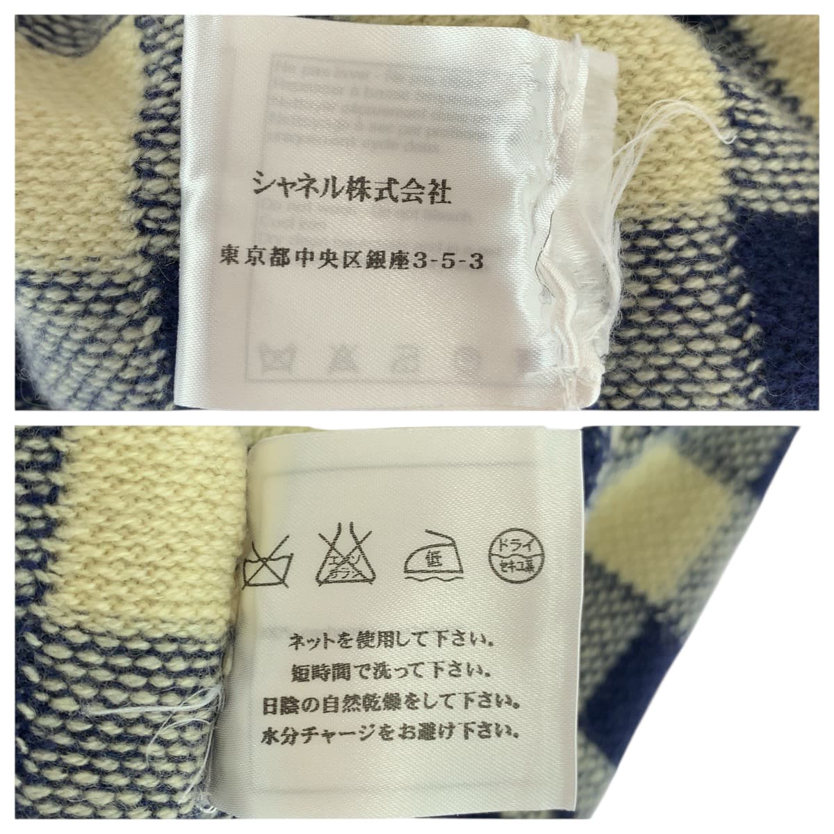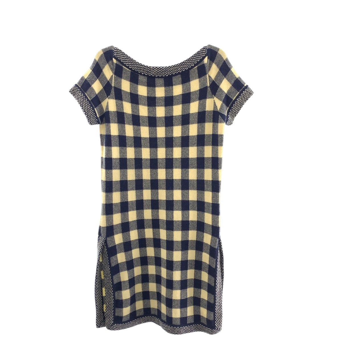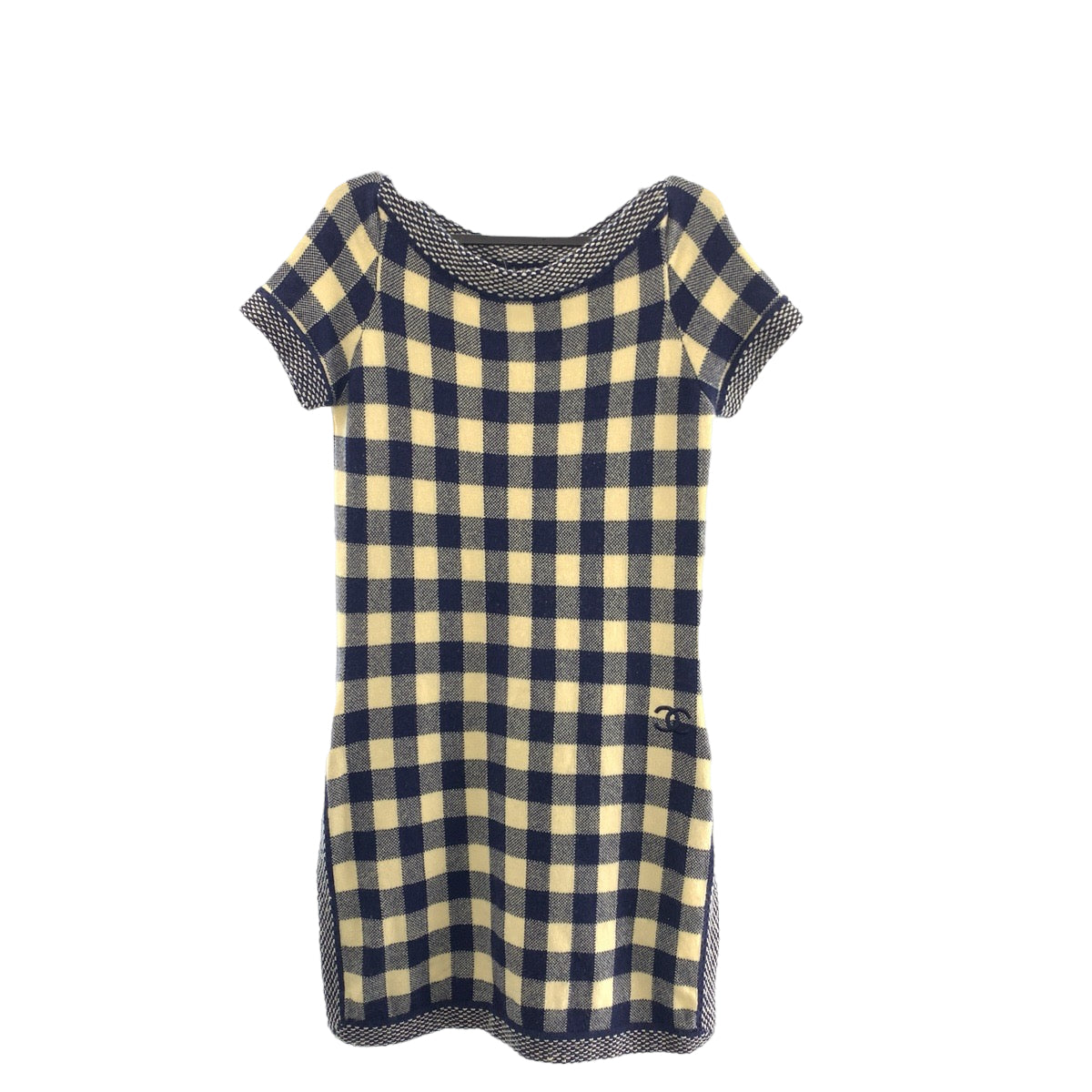 22582 CHANEL シャネル ココマーク チェック サイズ 38 ネイビー オフホワイト カシミヤ P40300K02908 ワンピース ニットワンピース スカート レディース A80
