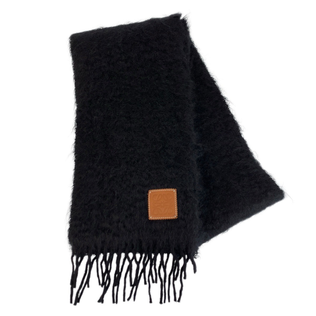 22587 LOEWE ロエベ アナグラム ブラック 黒 ブラウン ウール / モヘア マフラー ストール 男女兼用 レディース A35