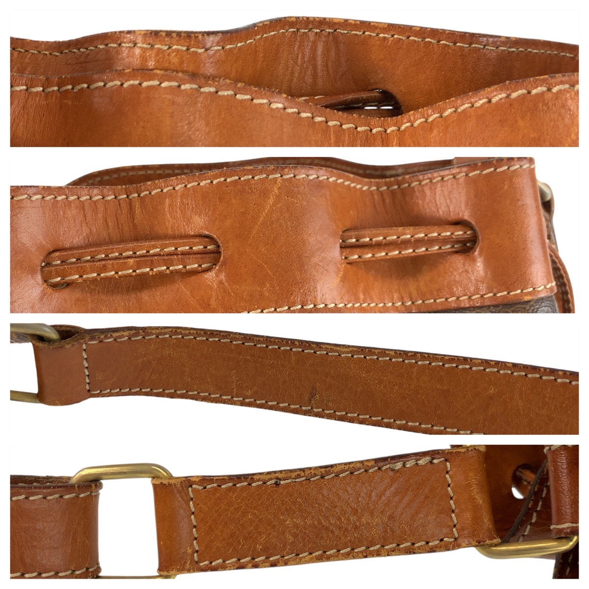 薄汚れ、擦れ、小傷などはありますが、まだまだ使用できる商品です 巾着の紐の留め具が片方ありません