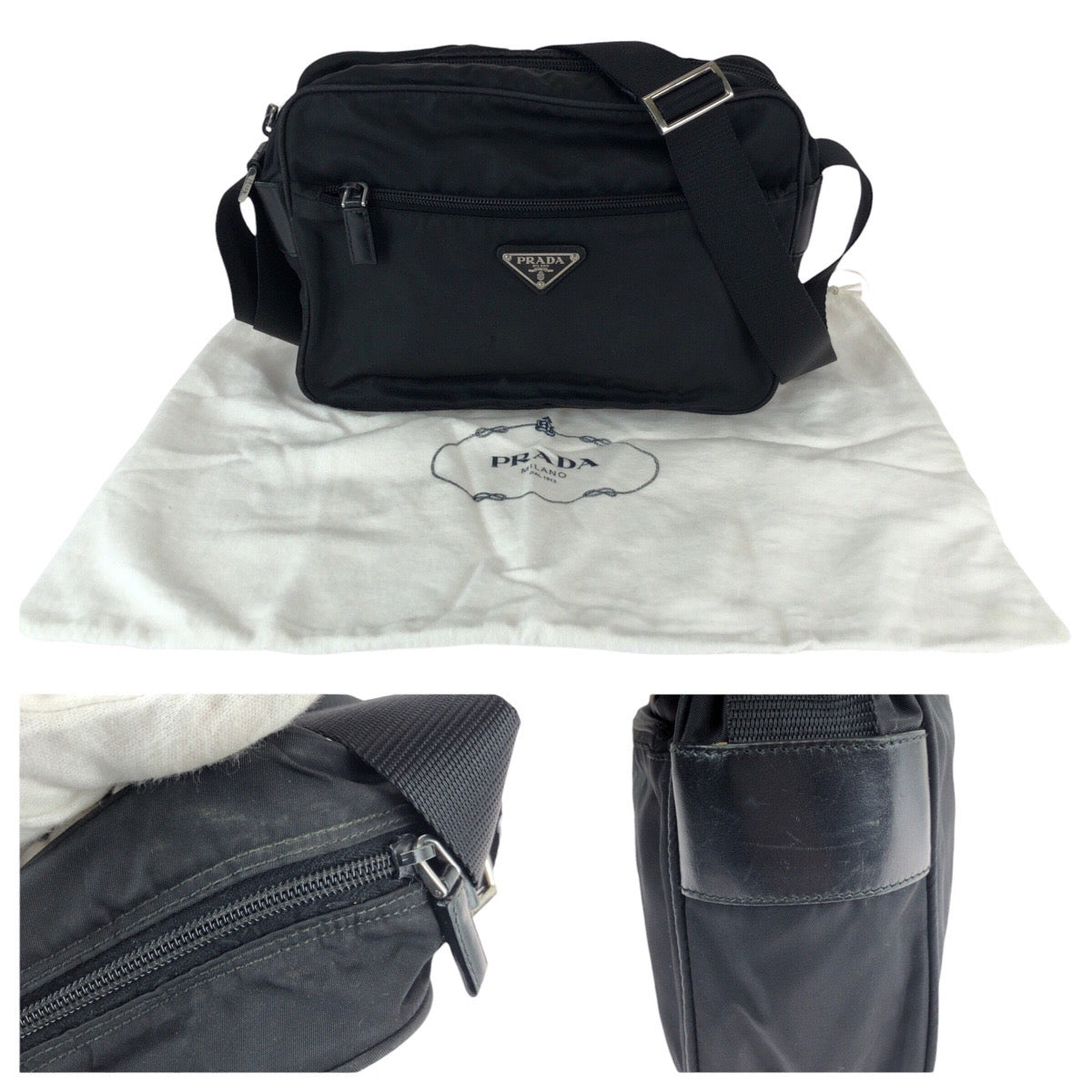 22631 PRADA プラダ テスート 三角ロゴプレート ブラック 黒 シルバー金具 ナイロン / レザー ショルダーバッグ メッセンジャーバッグ メンズ ABP37