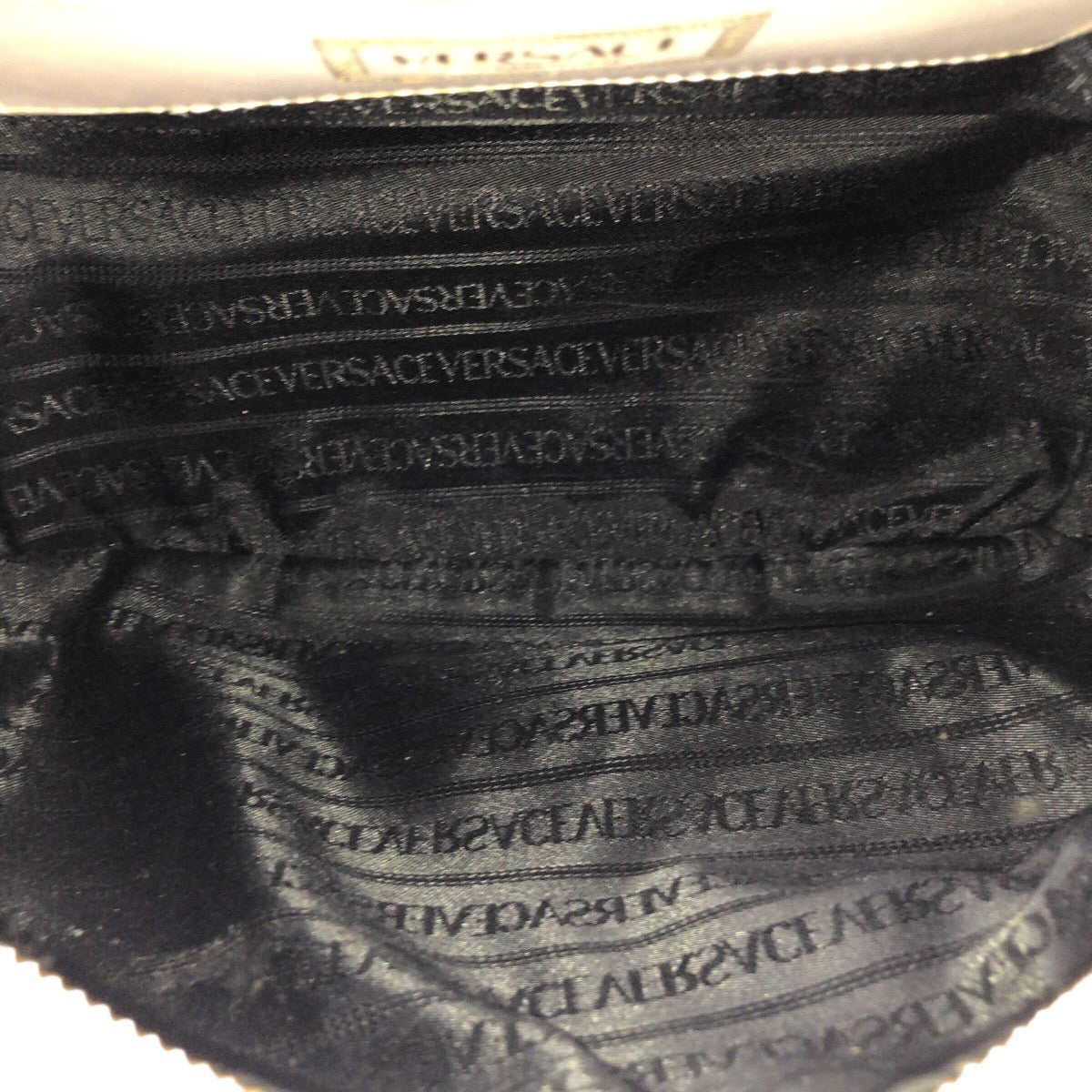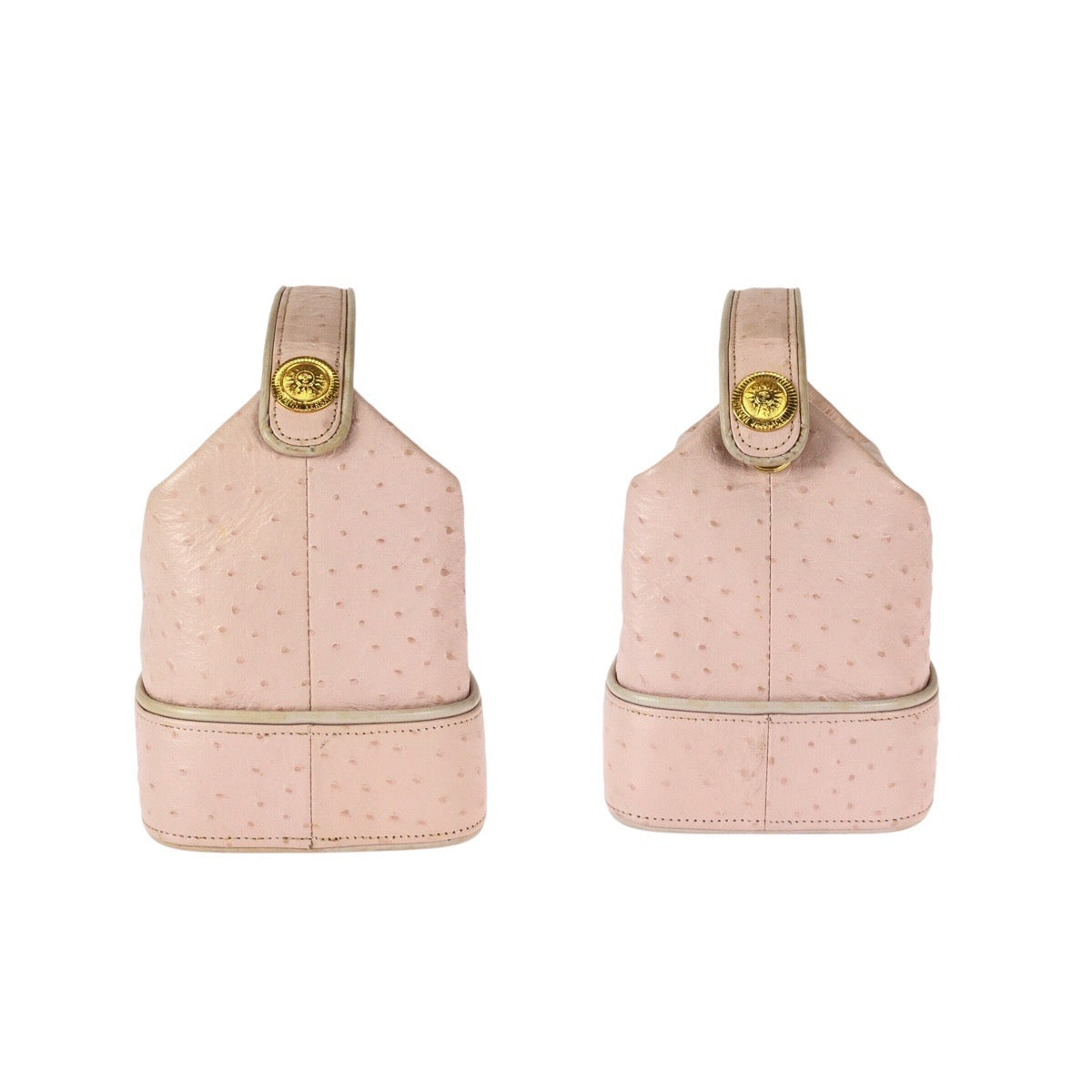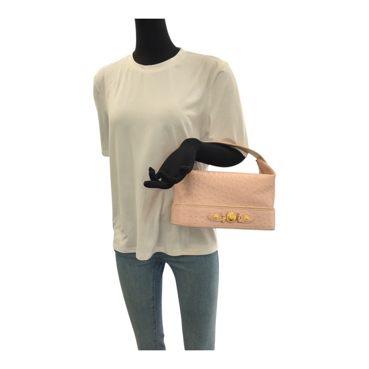 22639 VERSACE ヴェルサーチ ヴィンテージ サンバースト 型押し ピンク ゴールド金具 レザー ハンドバッグ バニティバッグ レディース AB35