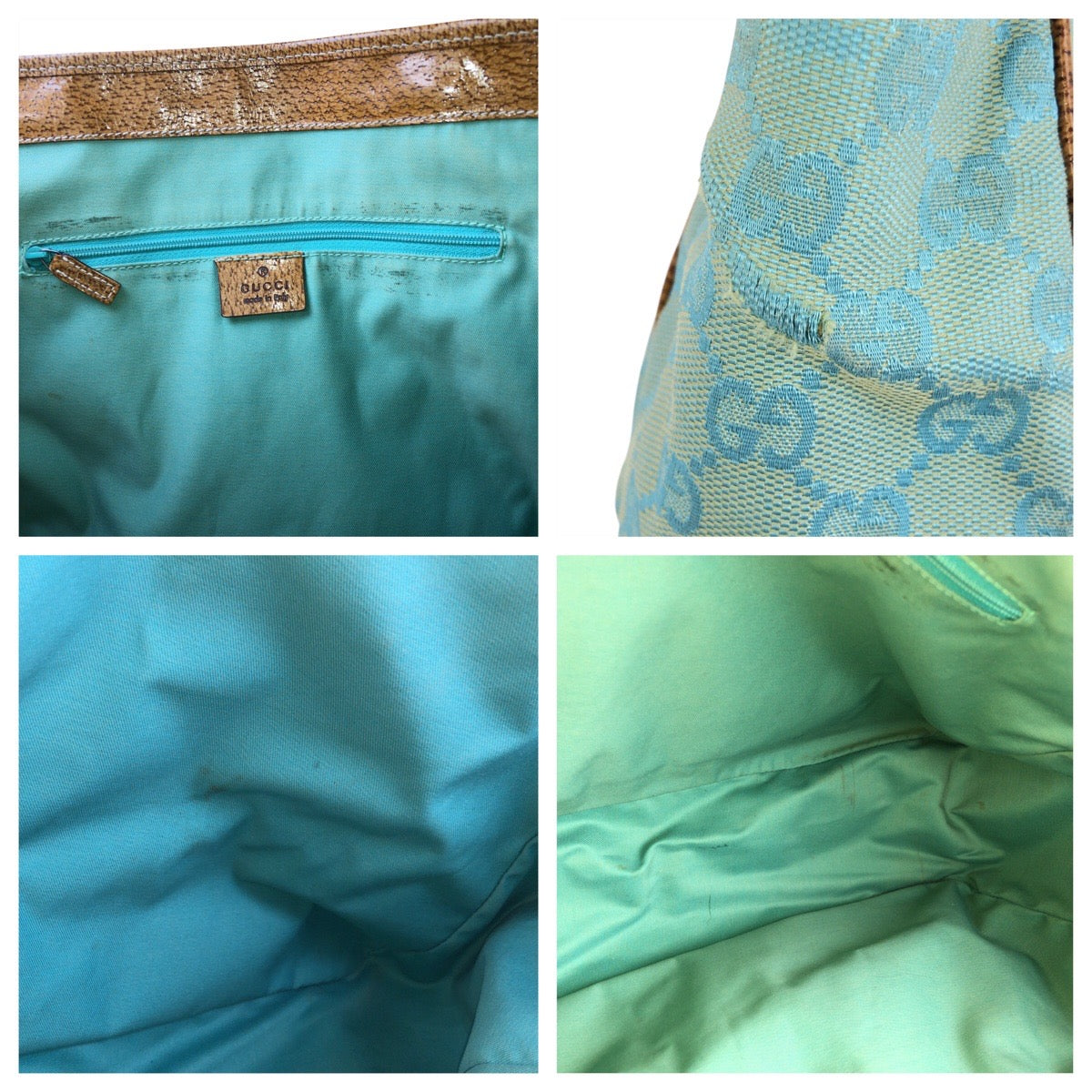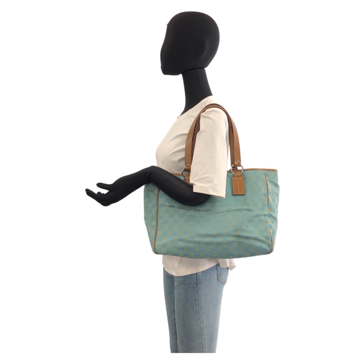 22655 GUCCI グッチ ライトブルー ブラウン GGキャンバス / レザー 113017 トートバッグ ショルダーバッグ レディース AB28