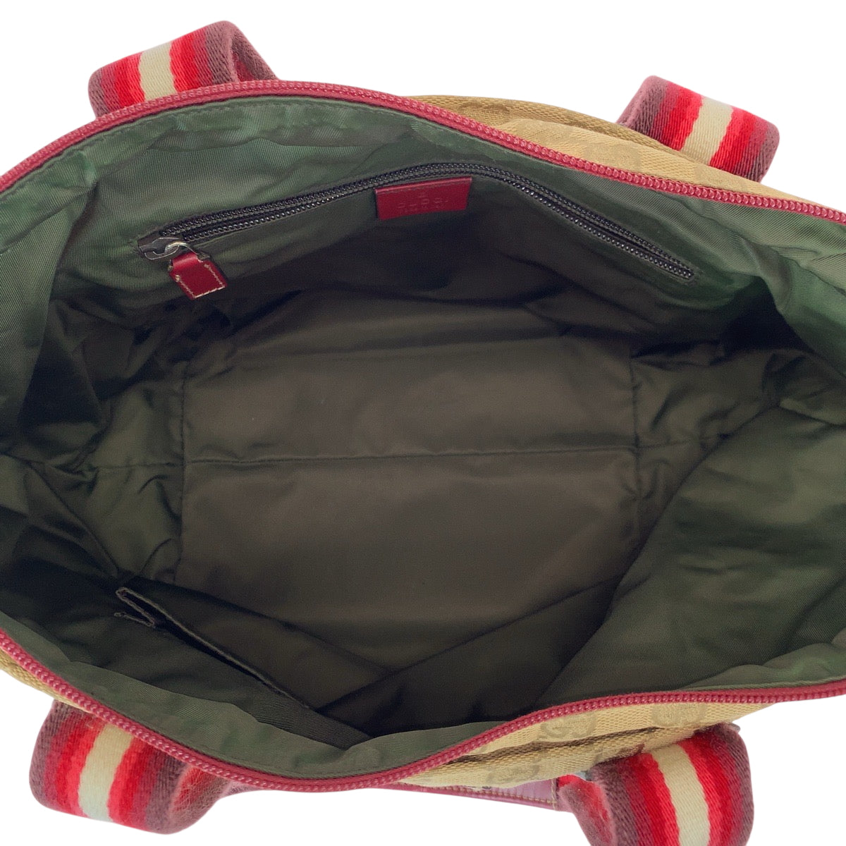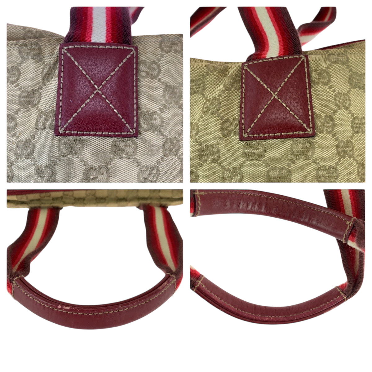 22658 GUCCI グッチ シェリーライン ブラウン ベージュ レッド GGキャンバス / レザー 131230 ショルダーバッグ トートバッグ レディース AB28