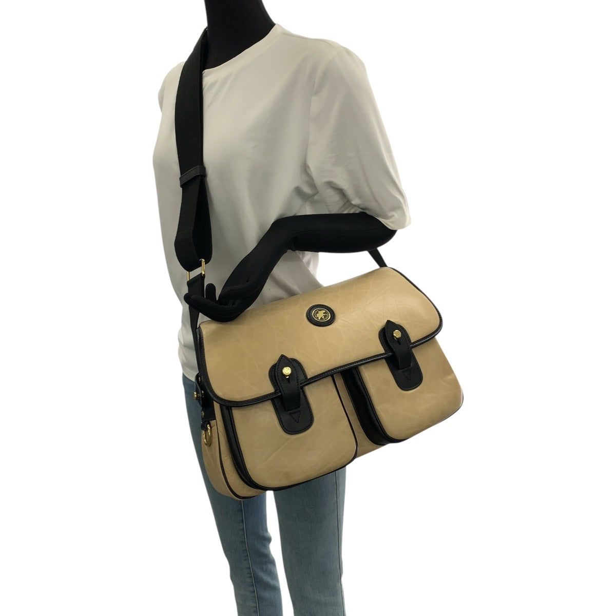 22666 HUNTING WORLD ハンティングワールド ベージュ ブラック ゴールド金具 バチュークロス ショルダーバッグ メッセンジャーバッグ レディース ABP28