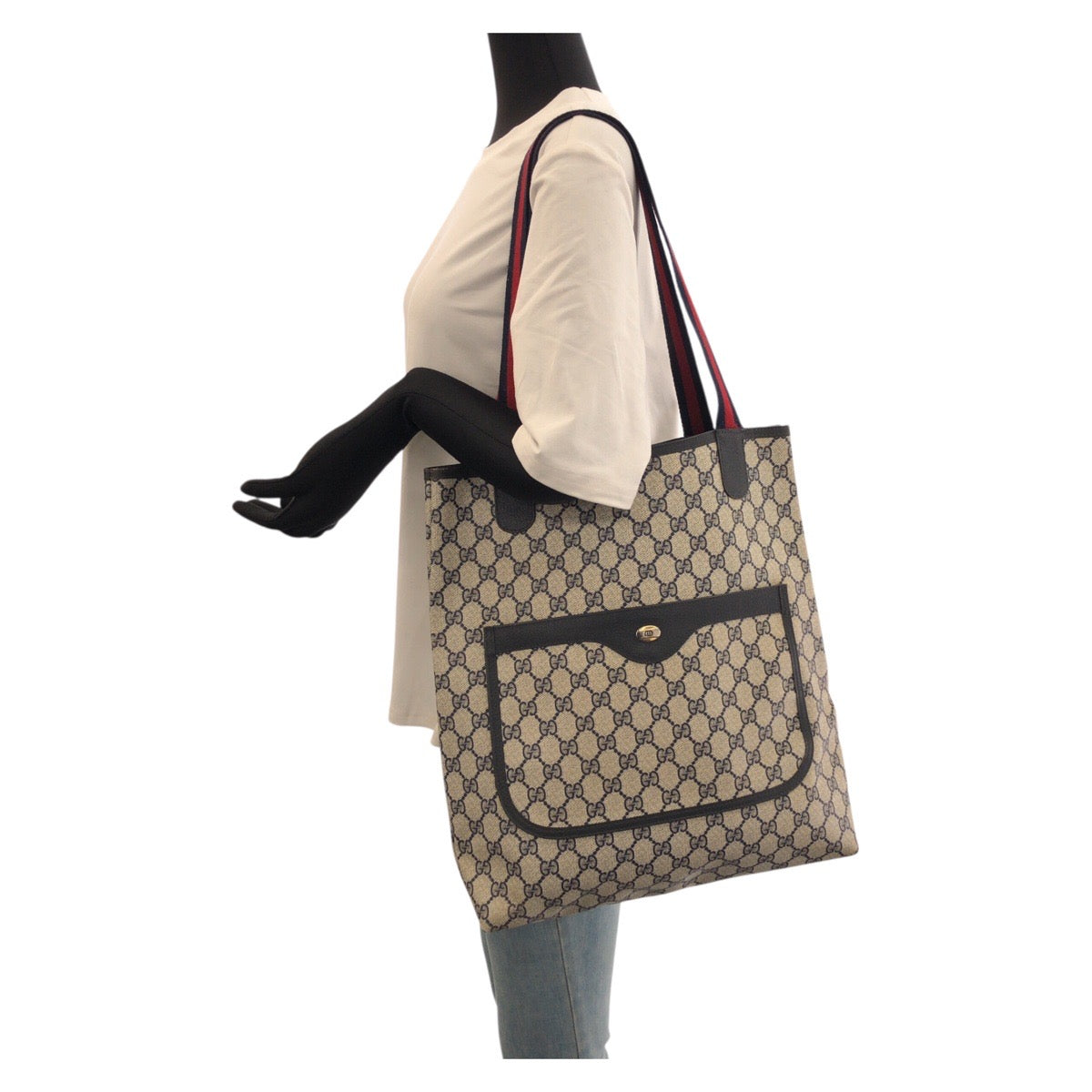22673 GUCCI グッチ ヴィンテージ オールドグッチ シェリーライン ネイビー レッド GGスプリームキャンバス / レザー 40.02.003 トートバッグ 男女兼用 メンズ ABP28