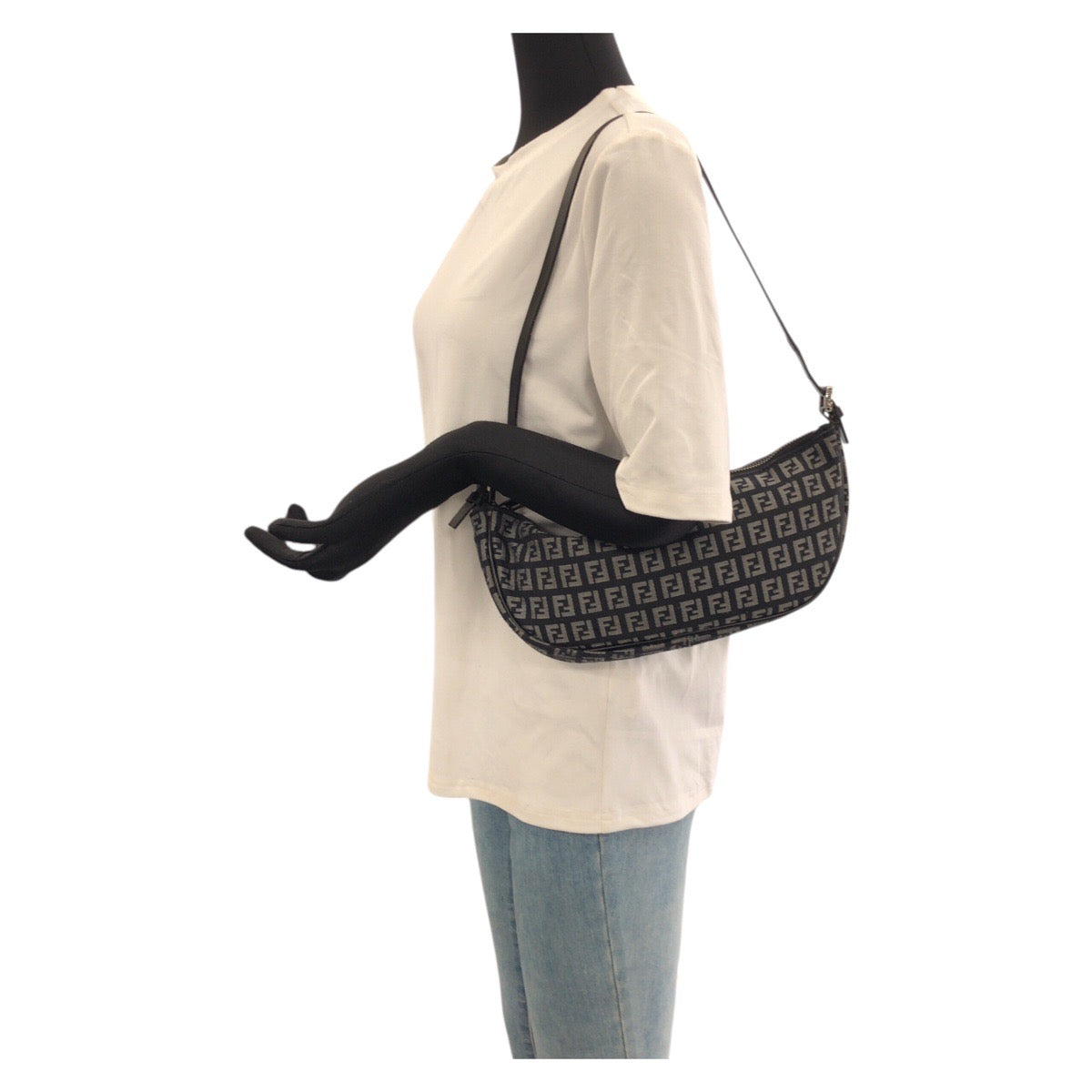 22720 FENDI フェンディ ズッカ ブラック 黒 ガンメタ金具 キャンバス / レザー 8BR144 ハンドバッグ ショルダーバッグ アクセサリーポーチ レディース AB49