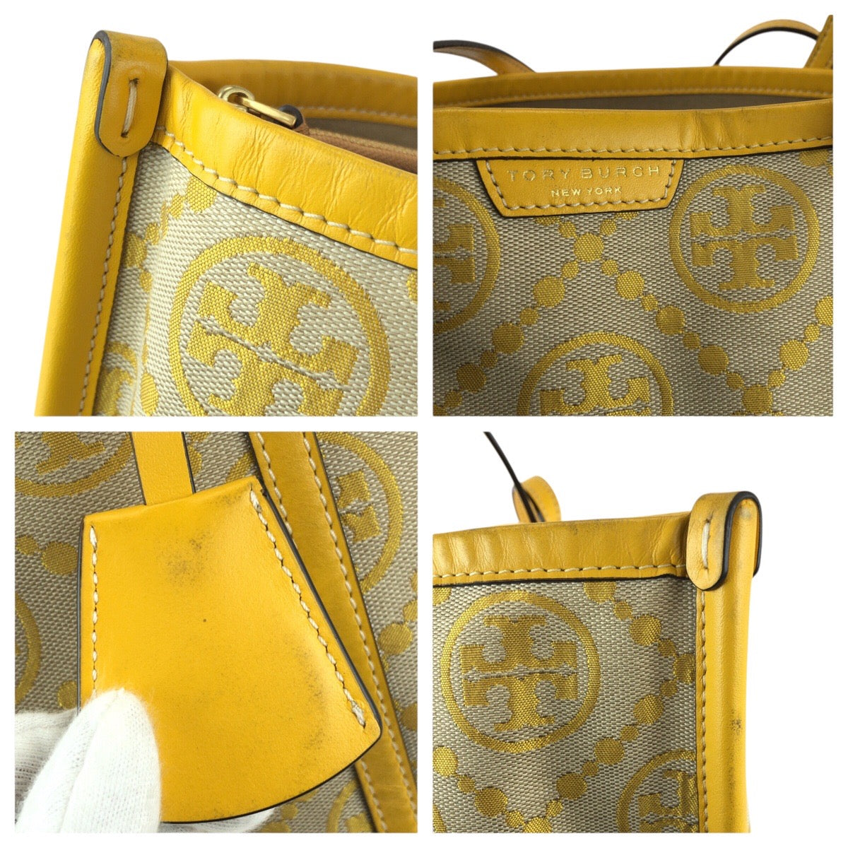 22725 Tory Burch トリーバーチ ペリーTモノグラム イエロー ゴールド金具 キャンバス / レザー 83312 トートバッグ ショルダーバッグ レディース ABP14