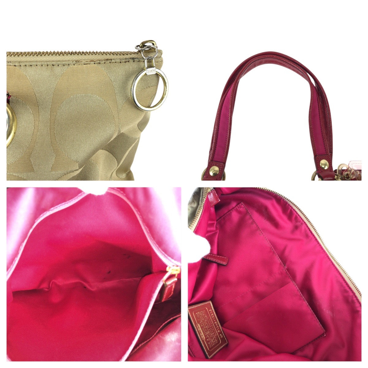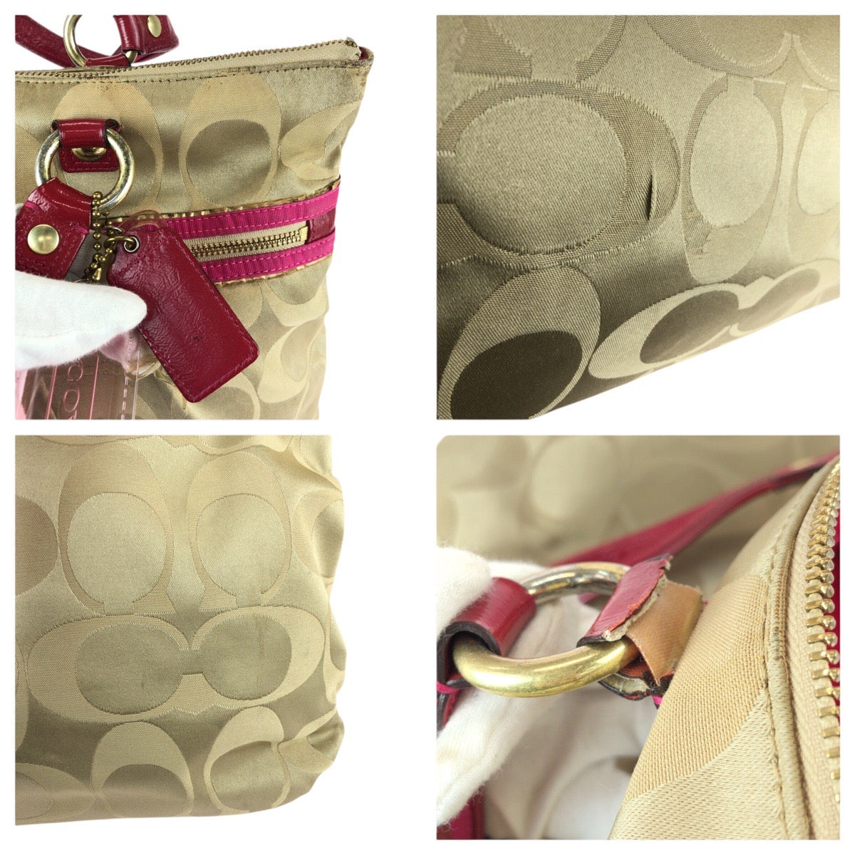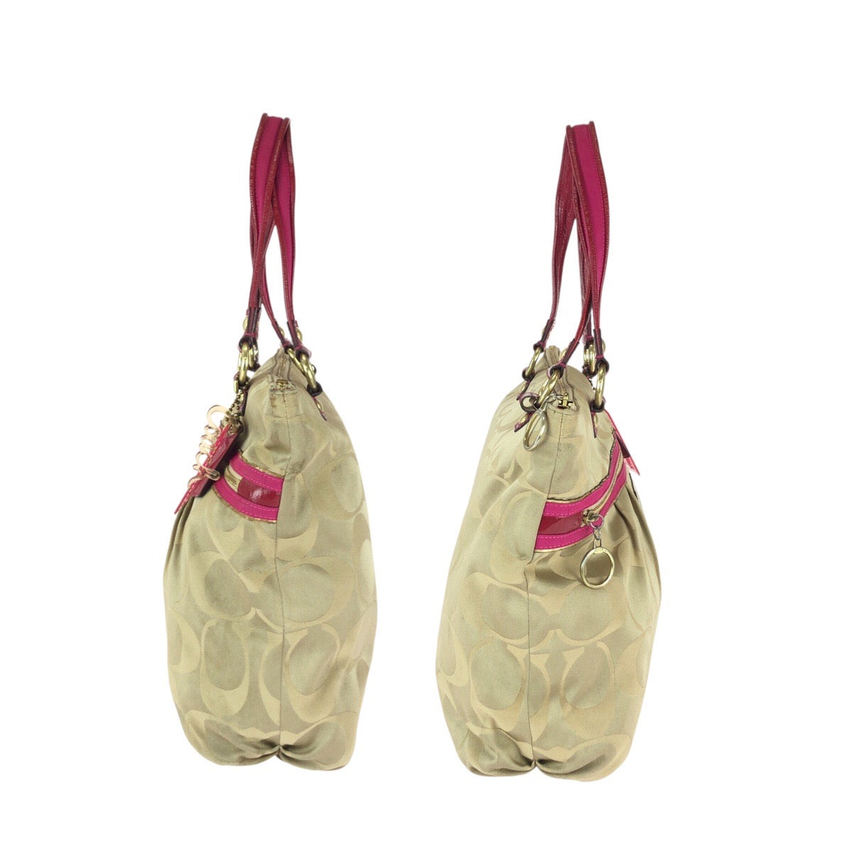 22765 COACH コーチ ポピー シグネチャー ベージュ ピンク ゴールド金具 キャンバス / パテントレザー 15316 トートバッグ ショルダーバッグ レディース AB4