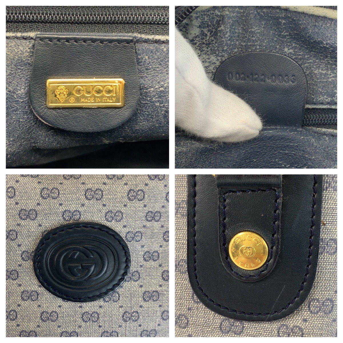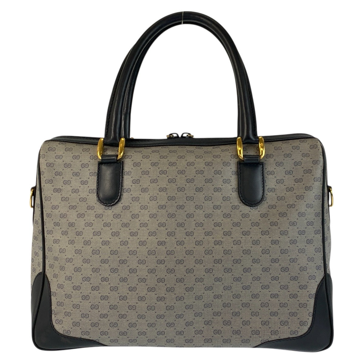 23003 GUCCI グッチ ヴィンテージ マイクロGG グレー ネイビー ゴールド金具 PVC / レザー 002 122 0033 ハンドバッグ ボストンバッグ レディース AB28