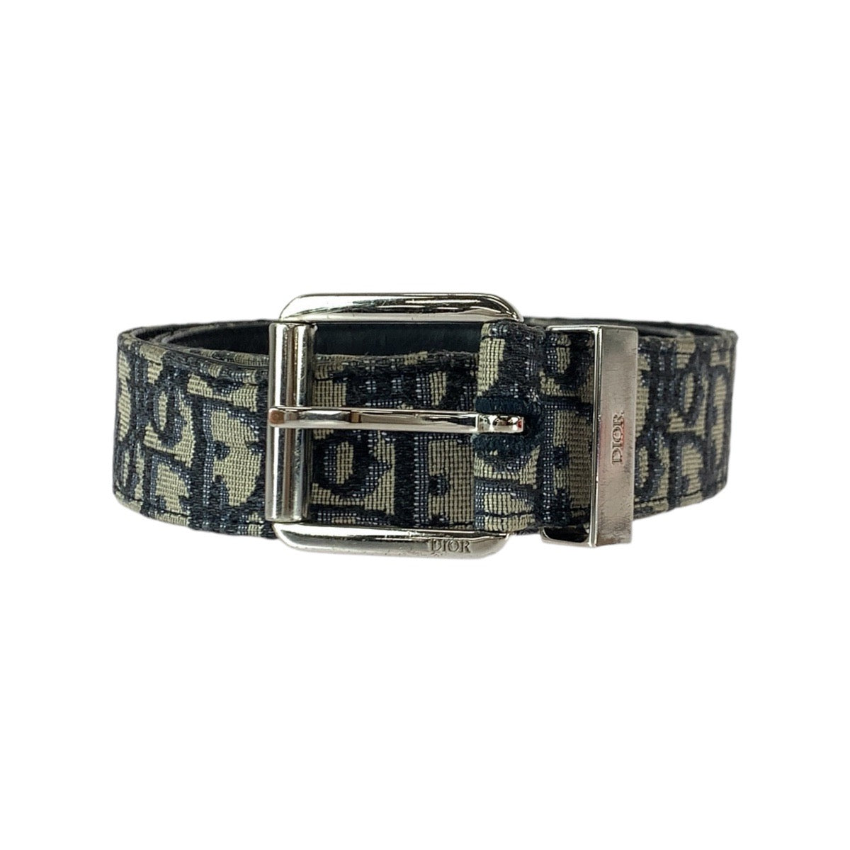 23083 Dior ディオール オブリーク ジャカード 85cm ネイビー シルバー金具 キャンバス / レザー 4333PLYSEHO5E ベルト メンズ AB35
