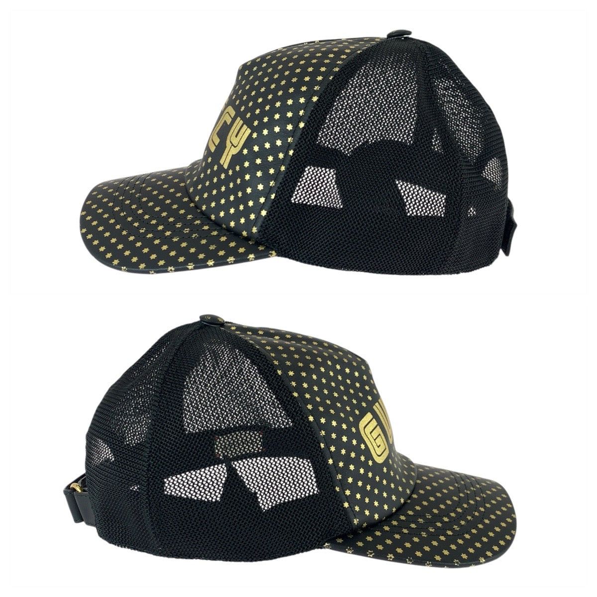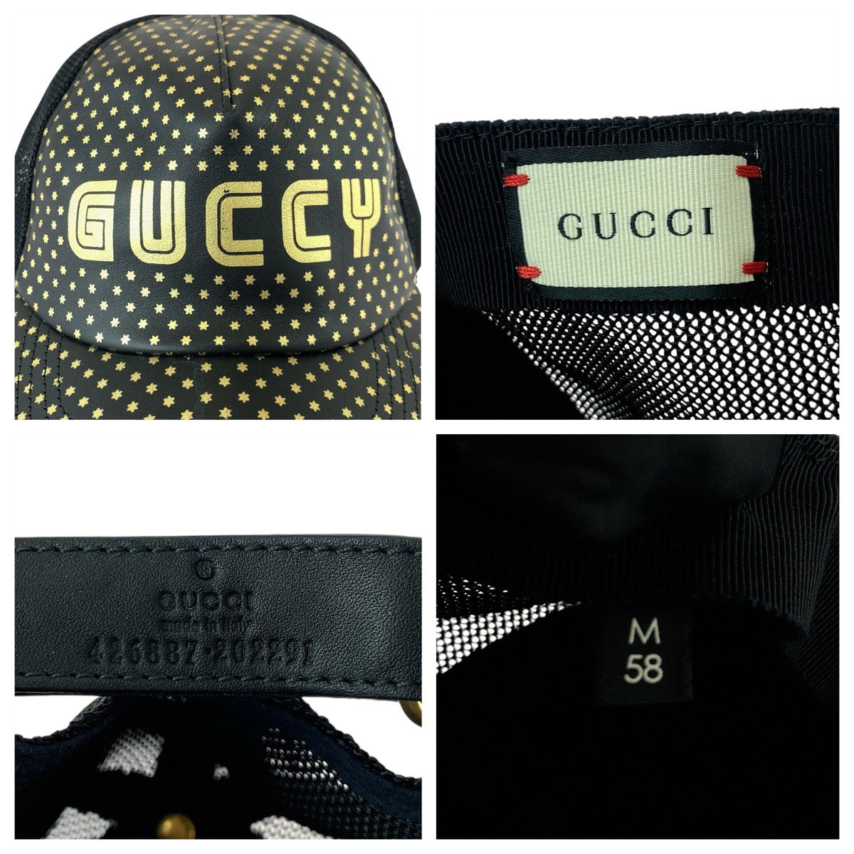 23084 GUCCI グッチ SEGAコラボ ブラック 黒 ゴールド レザー / ナイロン 426887 キャップ 男女兼用 メンズ A28