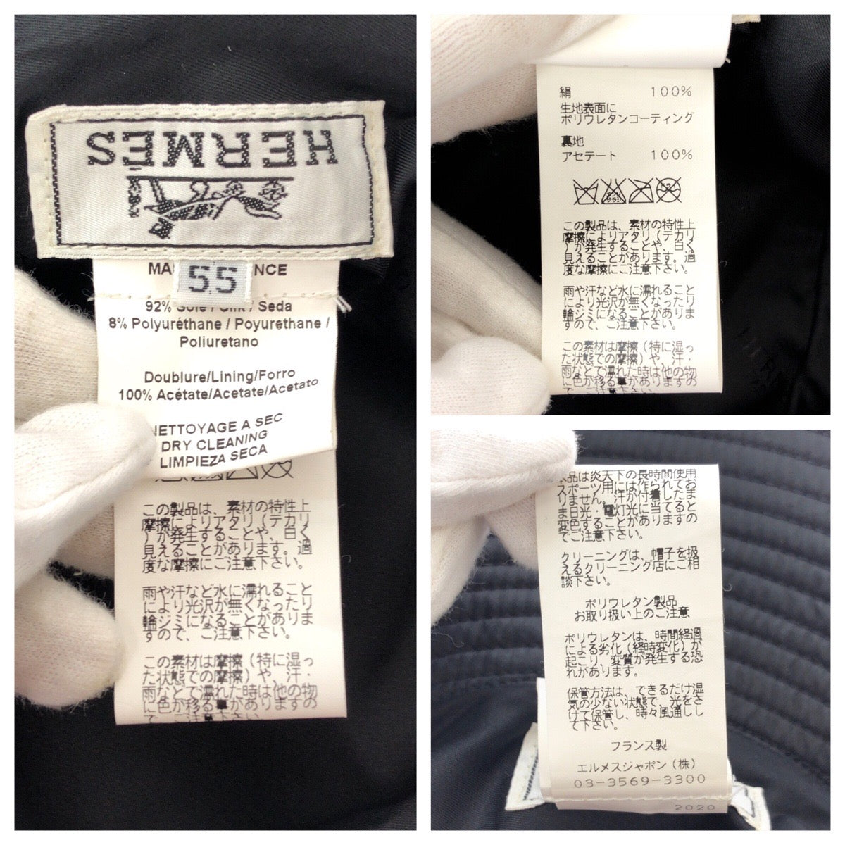 23103 HERMES エルメス サイズ55 ブラック ノワール 黒 シルク バケットハット 男女兼用 レディース A21