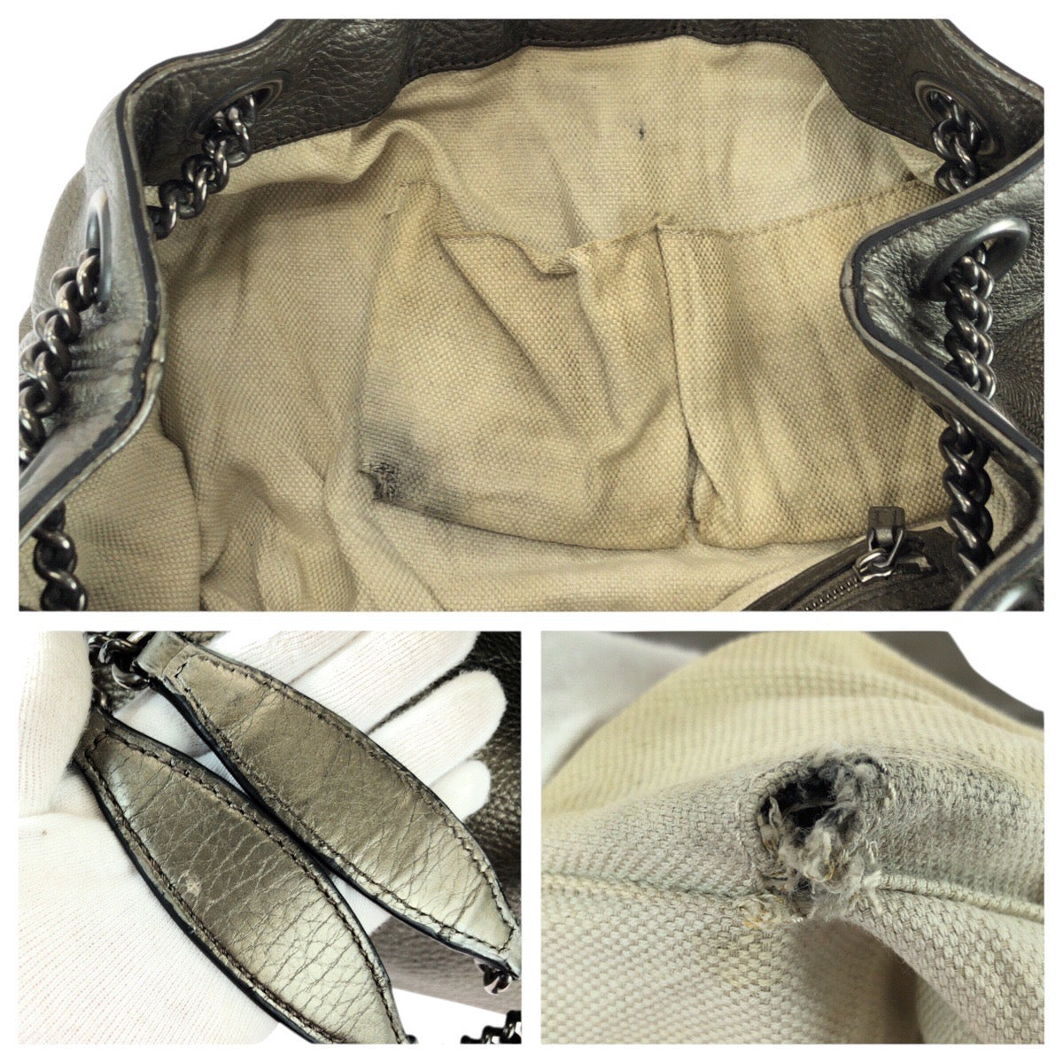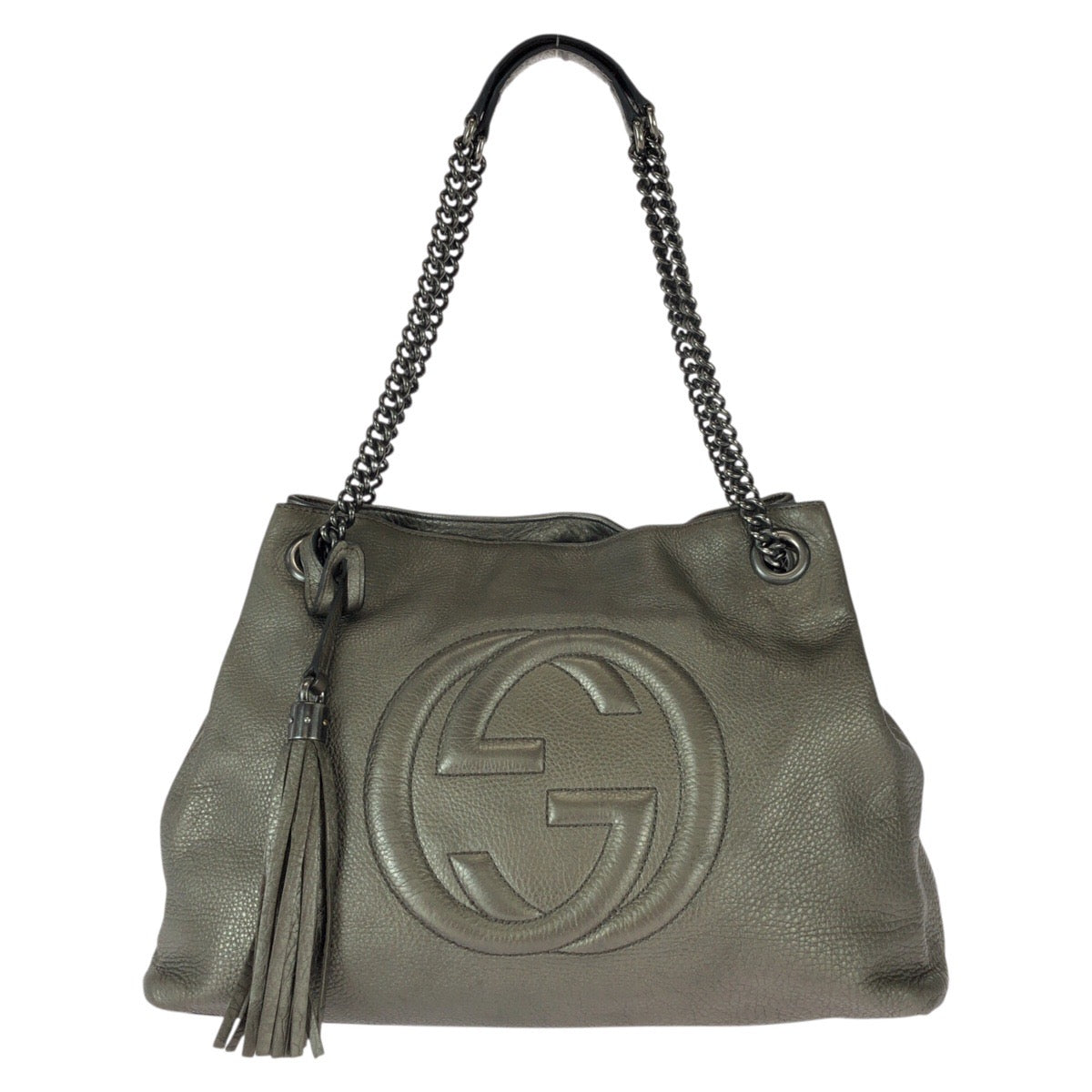 23121 GUCCI グッチ ソーホー タッセル グレー ガンメタ金具 レザー 308982 チェーンショルダーバッグ トートバッグ レディース AB64