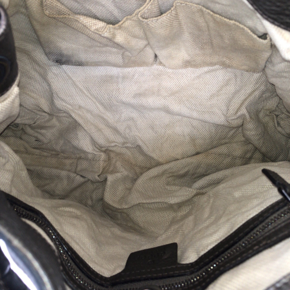 Although there are light stains, scuffs, and small scratches, it is still a product that can be used The fabric of the inner pocket has discolored and peeled slightly.
