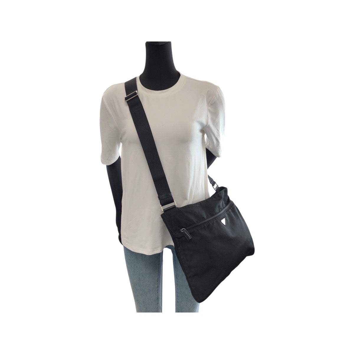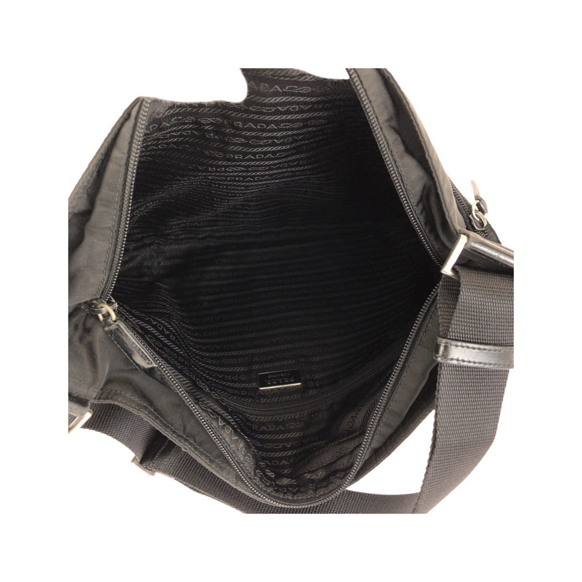 23122 PRADA プラダ テスート 三角ロゴプレート ブラック 黒 シルバー金具 ナイロン ショルダーバッグ ポシェット メンズ ABP42