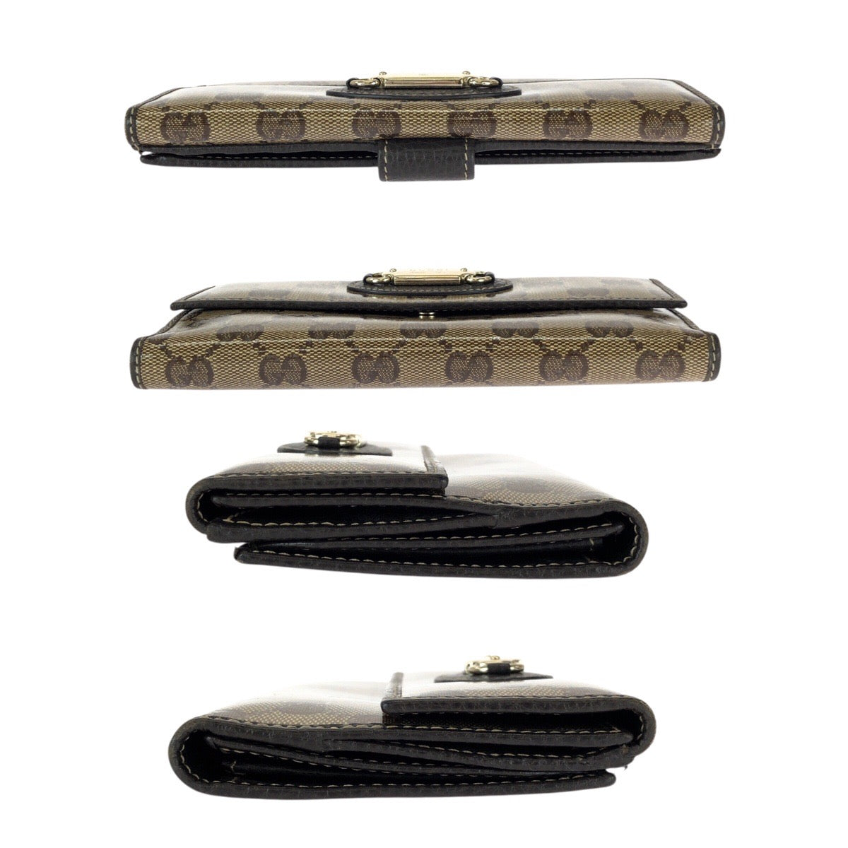 23124 GUCCI グッチ GGクリスタル ブラウン ゴールド金具 PVC / レザー 231841 長財布 ロングウォレット レディース A35