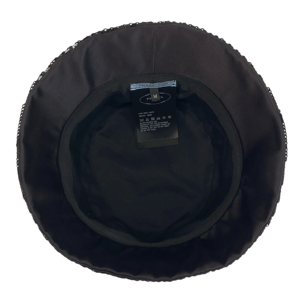 23143 PRADA プラダ ロゴ スパンコール ブラック 黒 コットン / シルク バケットハット 男女兼用 レディース A50