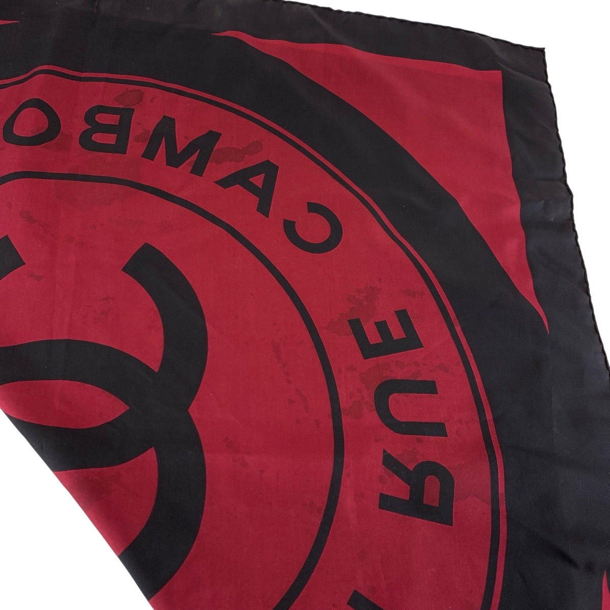 23181 CHANEL シャネル ヴィンテージ 31 RUE CAMBON ココマーク ワインレッド ブラック シルク スカーフ レディース AB42