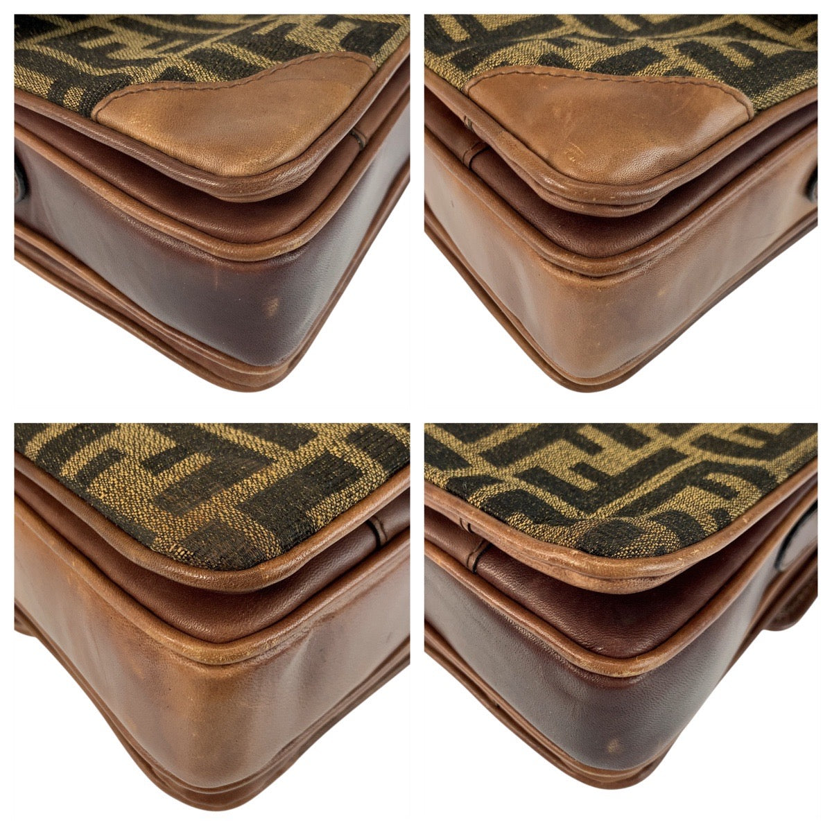 23322 FENDI フェンディ ヴィンテージ ズッカ ブラウン ゴールド金具 キャンバス / レザー ショルダーバッグ ポシェット レディース AB42