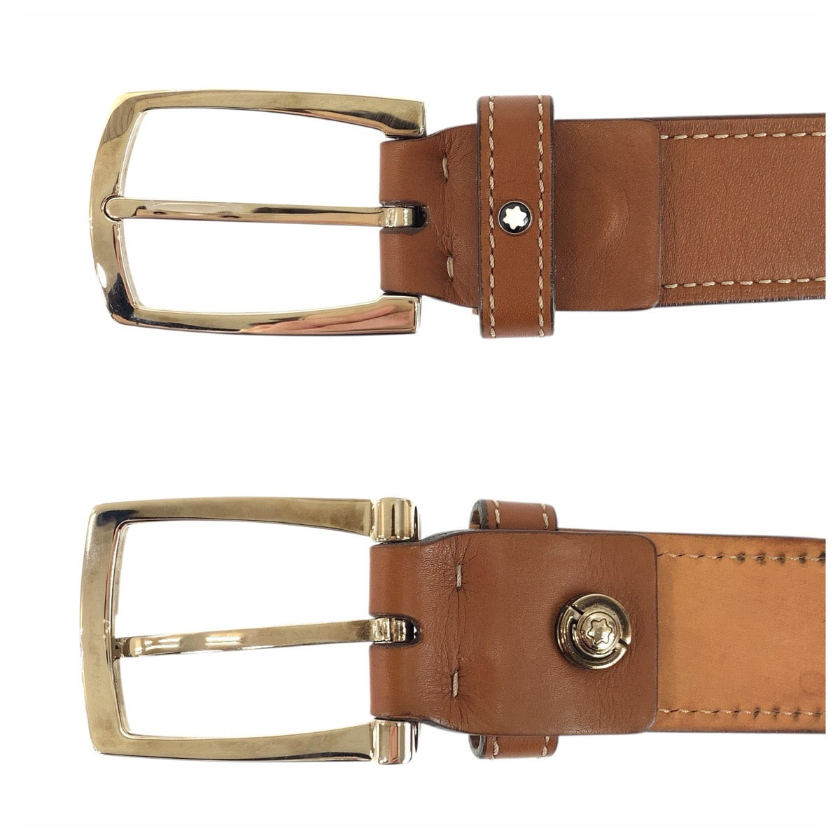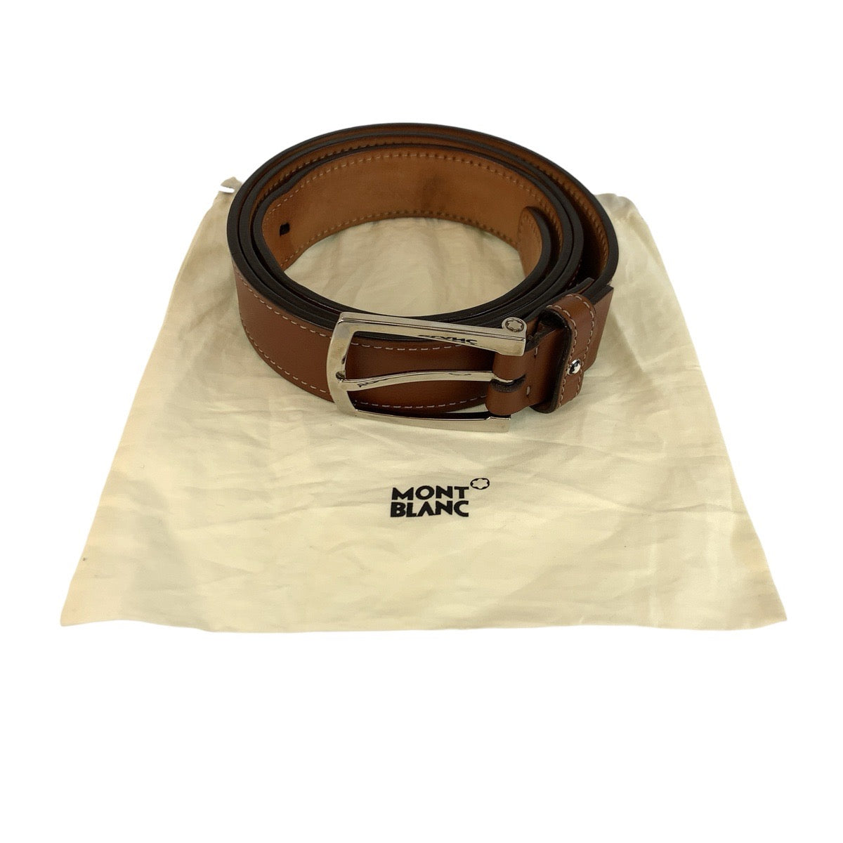 23543 MONTBLANC モンブラン 103cm ブラウン キャメル シルバー金具 レザー ベルト メンズ ABP16