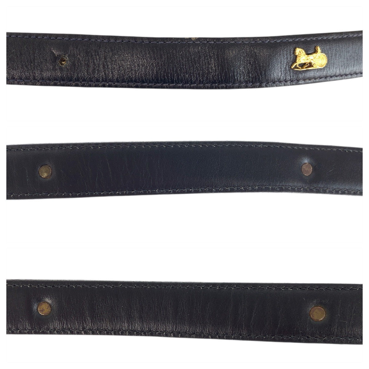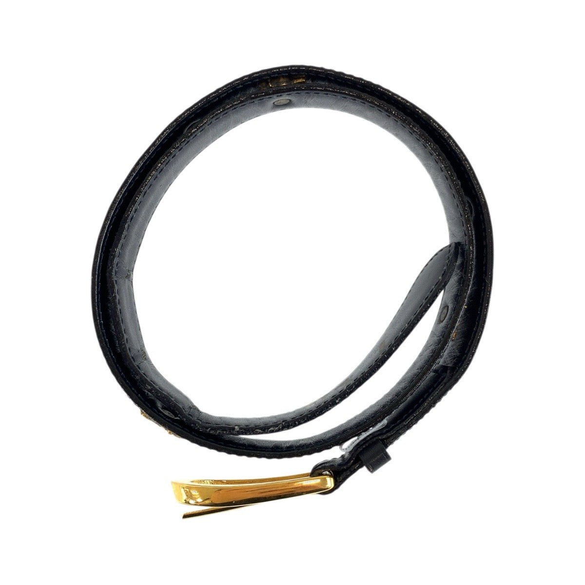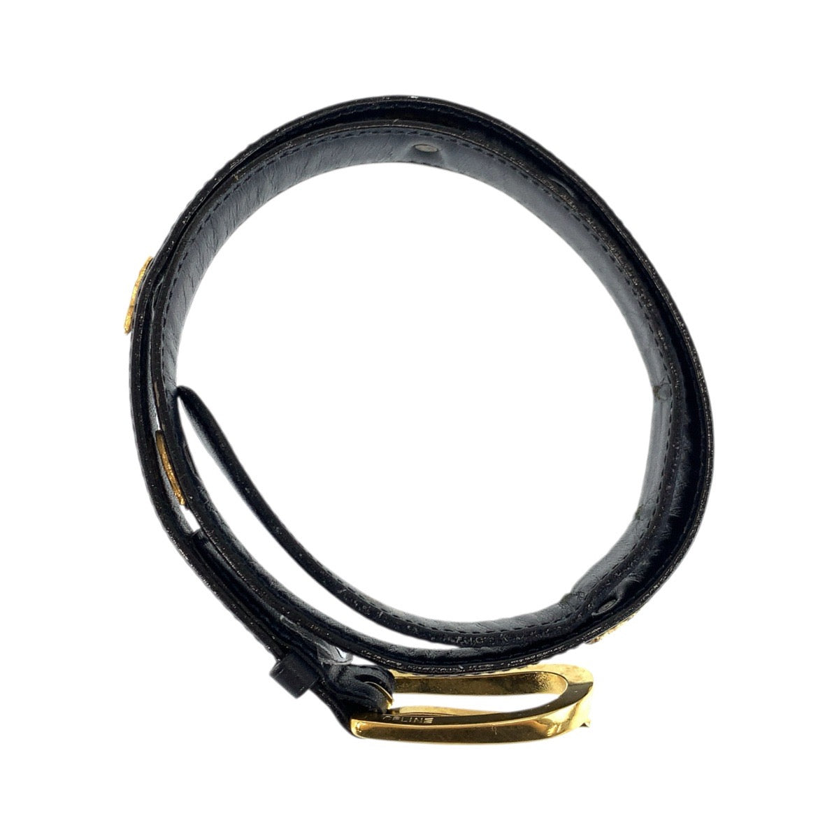 23713 CELINE セリーヌ ヴィンテージ 馬車金具 65cm ブラック 黒 ゴールド金具 レザー ベルト レディース AB14