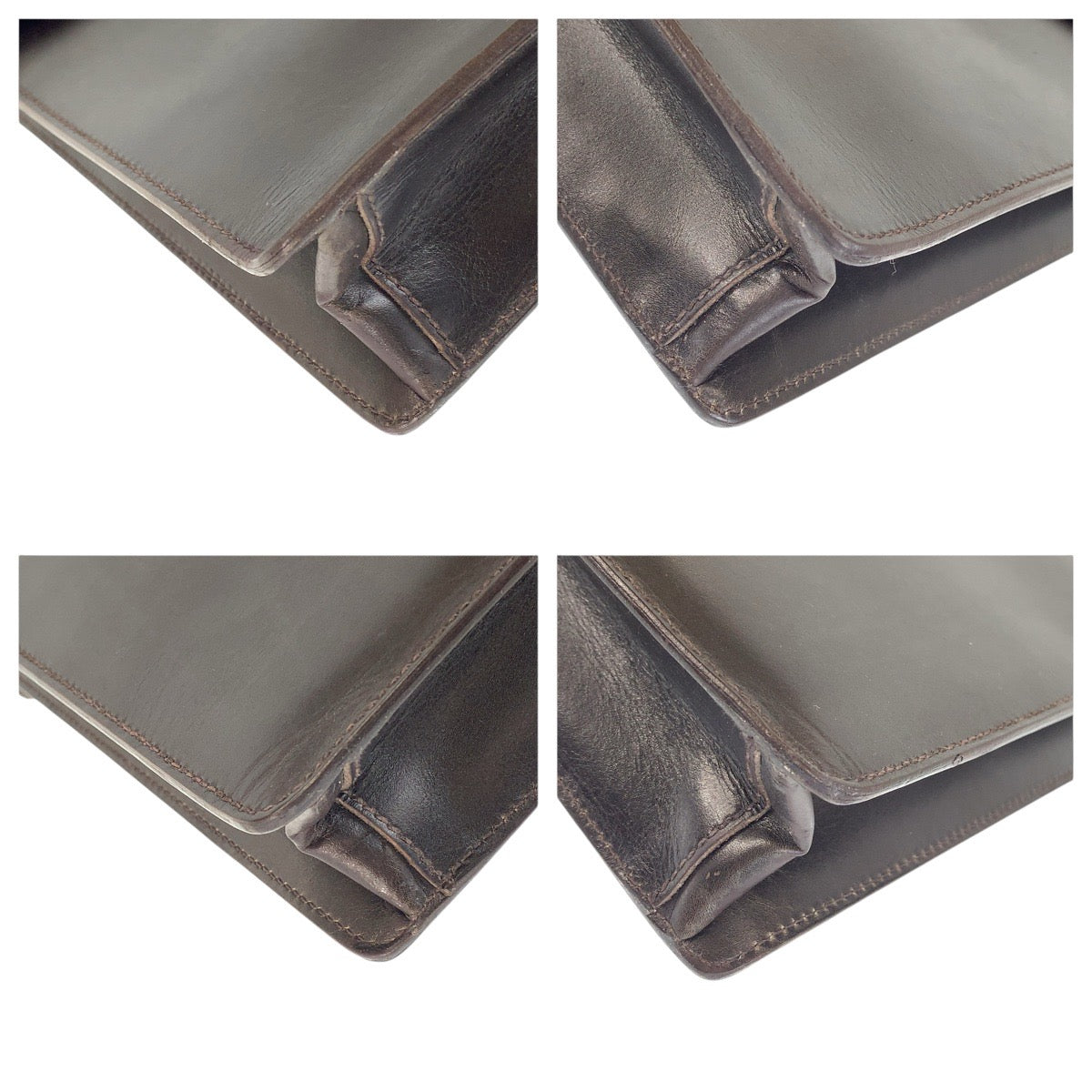 23970 PRADA プラダ ブラウン シルバー金具 レザー ビジネスバッグ ブリーフケース メンズ ABP