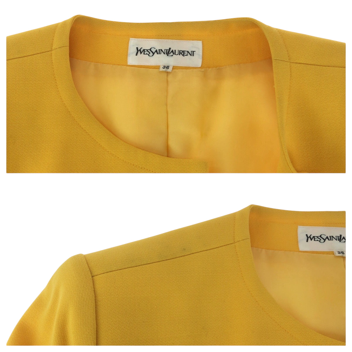 23982 YVES SAINT LAURENT イヴ サンローラン ヴィンテージ YSL 36 イエロー ゴールド金具 ウール ジャケット レディース A28